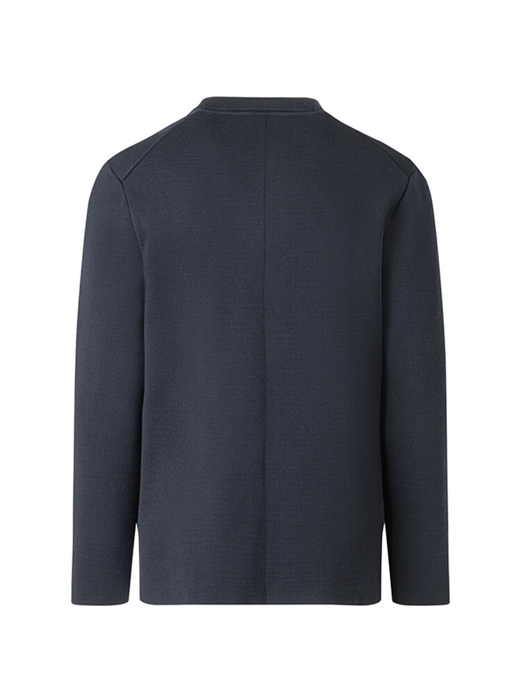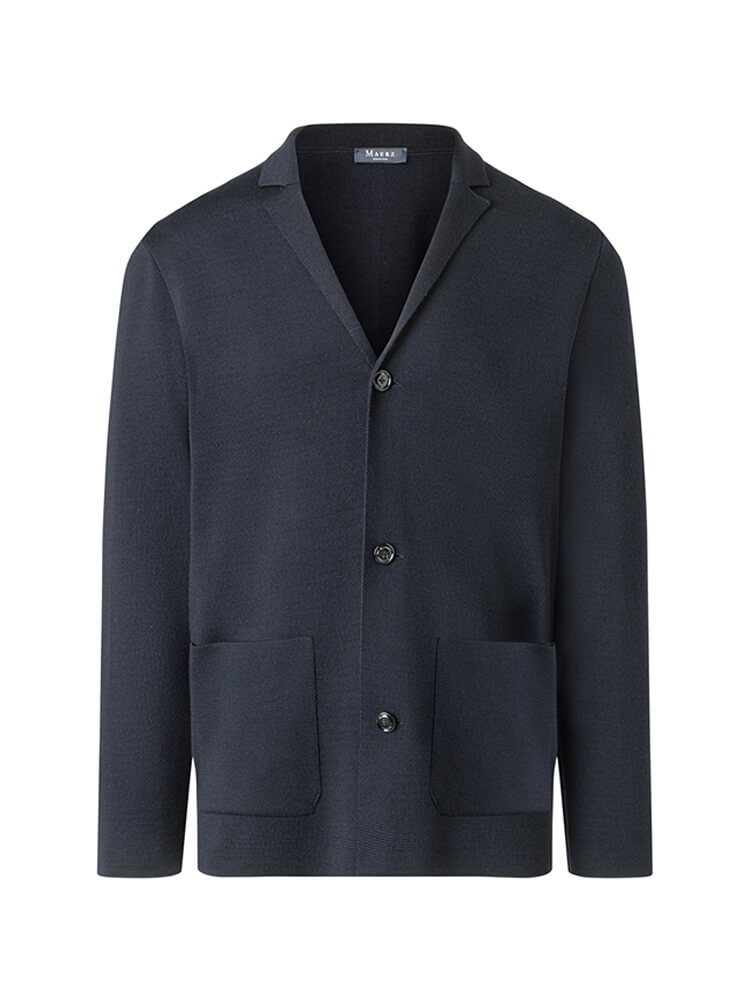 Zu jeder Jahreszeit, sorgt der überaus stilvolle MAERZ Blazer an kühleren Abenden oder Tagen für ein angenehmen Tragekomfort. Dieser unifarbene Blazer in der Farbe marine aus 100% Merinowolle mit eleganten V-Auschnitt ergänzt Ihren Kleiderschrank und unterstreicht ihre maskuline Silhouette. Ob in der Freizeit oder im Büro der Wohlfühlfaktor ist mit diesem leicht taillierten Pullover aus dem Hause MAERZ garantiert.