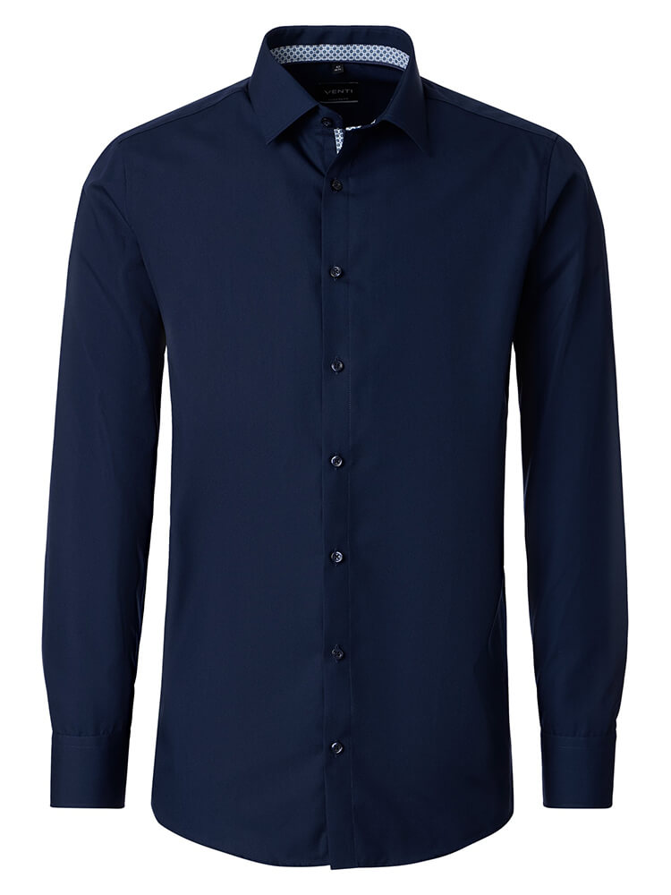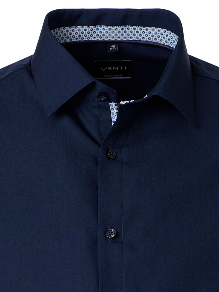 Das moderne Businesshemd aus der VENTI Modern Fit Kollektion steht für den selbstbewussten und modischen Mann von heute. Ein zeitgemäßer Schnitt verbunden mit erstklassigen Produktdetails verspricht einen hohen Komfort und macht dieses Hemd zu einem Meister des Arrangements. Das unifarbene Herrenhemd in der Farbe marine darf in keiner Herrengarderobe fehlen und kann mit dem vornehmen und klassischen Kent Kragen zu jedem Anlass sowie im Alltag getragen werden. Mit einer passenden Krawatte und einem großen Krawattenknoten kommt dieses VENTI Modern Fit Herrenhemd am besten zur Geltung.
