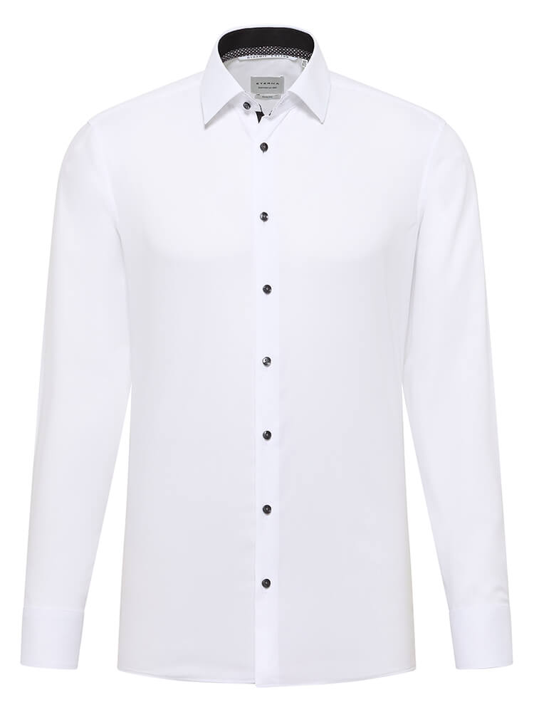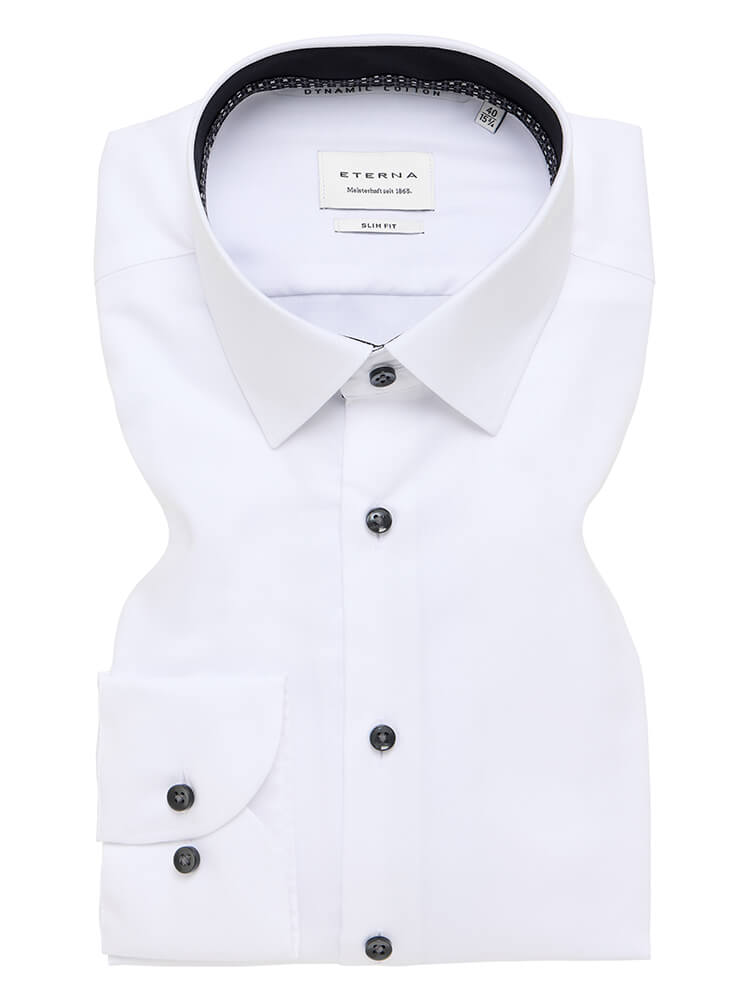 The elegant business shirt from the ETERNA Slim Fit collection represents the slim, fashion-conscious man of today. A slim fit combined with fashionable details promise a high level of comfort and make this shirt a combination artist. The plain men's shirt in the colour white should not be missing from any man's wardrobe and can be worn with the elegant and classic Kent collar for any occasion as well as in everyday life. This ETERNA Slim Fit men's shirt looks best with a narrow tie and a small tie knot.