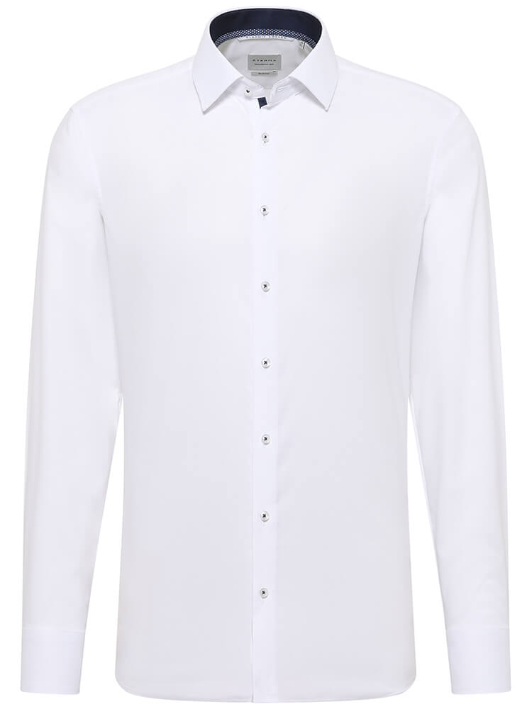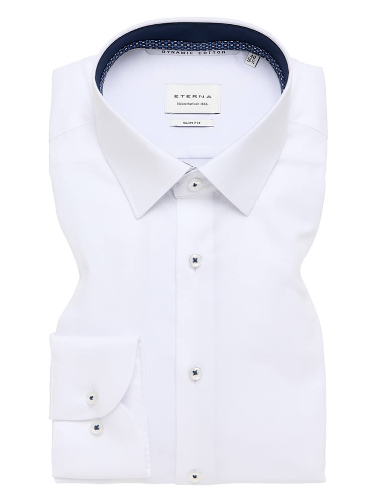 The elegant business shirt from the ETERNA Slim Fit collection represents the slim, fashion-conscious man of today. A slim fit combined with fashionable details promise a high level of comfort and make this shirt a combination artist. The plain men's shirt in the colour white should not be missing from any man's wardrobe and can be worn with the elegant and classic Kent collar for any occasion as well as in everyday life. This ETERNA Slim Fit men's shirt looks best with a narrow tie and a small tie knot.
