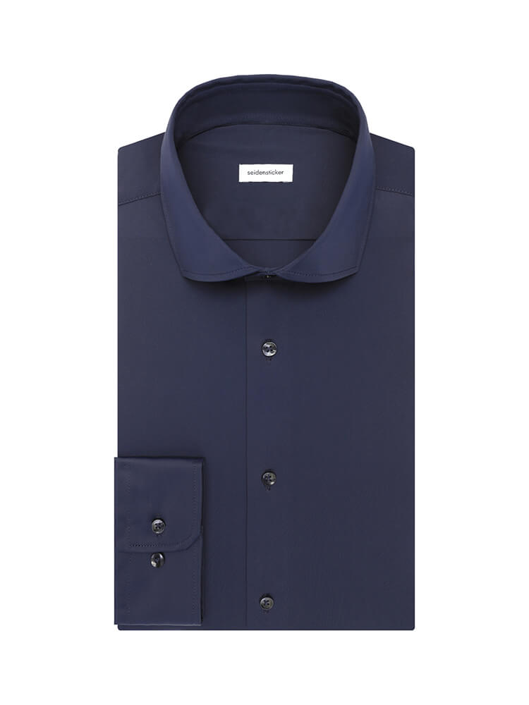 La chemise d'affaires élegante de la collection SEIDENSTICKER SLIM représente l'homme mince et soucieux de la mode d'aujourd'hui. Une coupe moulante associée à des détails mode promettent un haut niveau de confort et font de cette chemise un artiste de la combinaison. La chemise unie pour homme de la couleur marine ne doit manquer dans aucune garde-robe masculine et peut être portée avec le col 'élégant et intemporel Kent pour toute occasion ainsi que dans la vie de tous les jours. C'est avec une cravate étroite et un petit nœud de cravate que cette chemise pour homme SEIDENSTICKER SLIM à son meillieur.