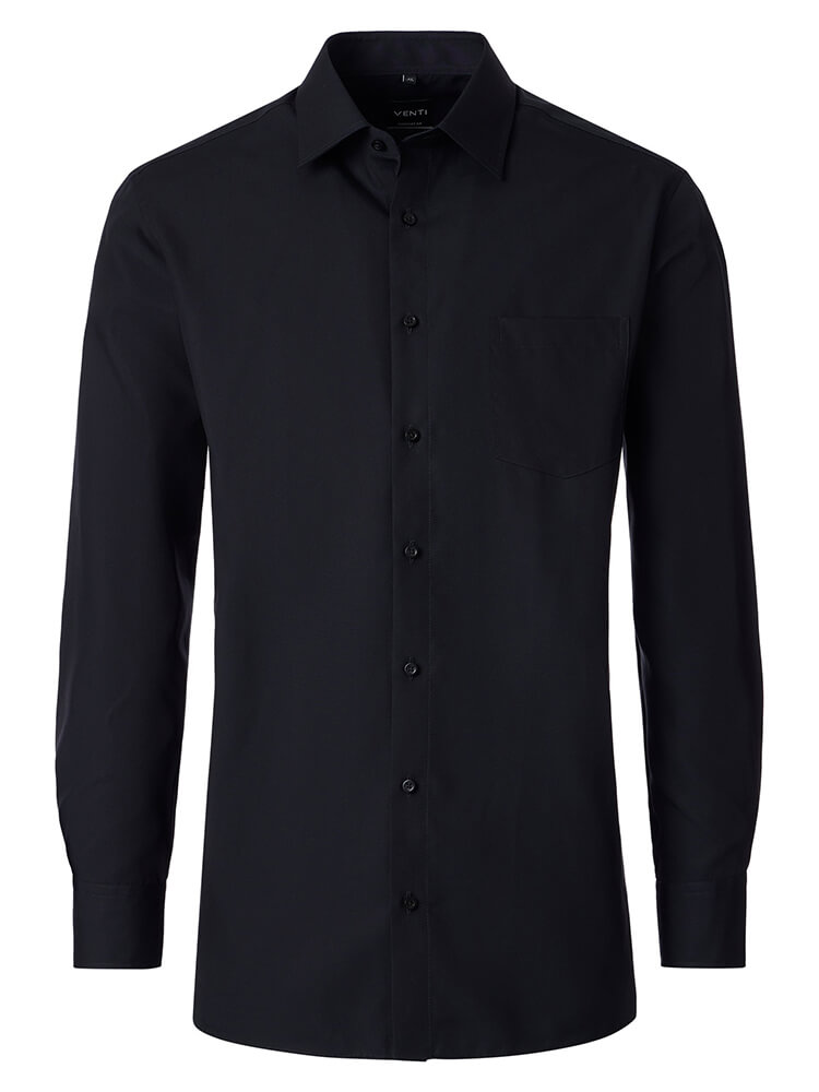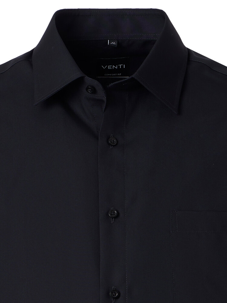 Het comfortabele business overhemd uit de VENTI Comfort Fit collectie staat voor de cultiveerte en modebewuste man van vandaag. Een klassieke snit gecombineerd met modieuze productdetails belooft een hoog comfort en maakt van dit hemd een meester in het combineren. Het effen overhemd in de kleur zwart overhemd voor heren mag in geen enkele mannengarderobe ontbreken en kan met de elegante en tijdloze Kent kraag zowel voor elke gelegenheid als in het dagelijks leven worden gedragen. Dit VENTI Comfort Fit herenoverhemd komt het beste tot zijn recht met een bijpassende stropdas en een brede dasknoop.