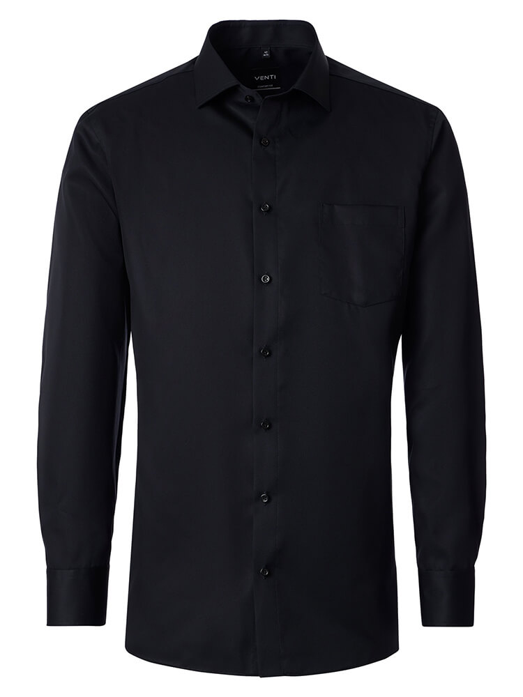 Het comfortabele business overhemd uit de VENTI Comfort Fit collectie staat voor de cultiveerte en modebewuste man van vandaag. Een klassieke snit gecombineerd met modieuze productdetails belooft een hoog comfort en maakt van dit hemd een meester in het combineren. Het effen overhemd in de kleur zwart overhemd voor heren mag in geen enkele mannengarderobe ontbreken en kan met de elegante en tijdloze Kent kraag zowel voor elke gelegenheid als in het dagelijks leven worden gedragen. Dit VENTI Comfort Fit herenoverhemd komt het beste tot zijn recht met een bijpassende stropdas en een brede dasknoop.Fabrikantgegevens: