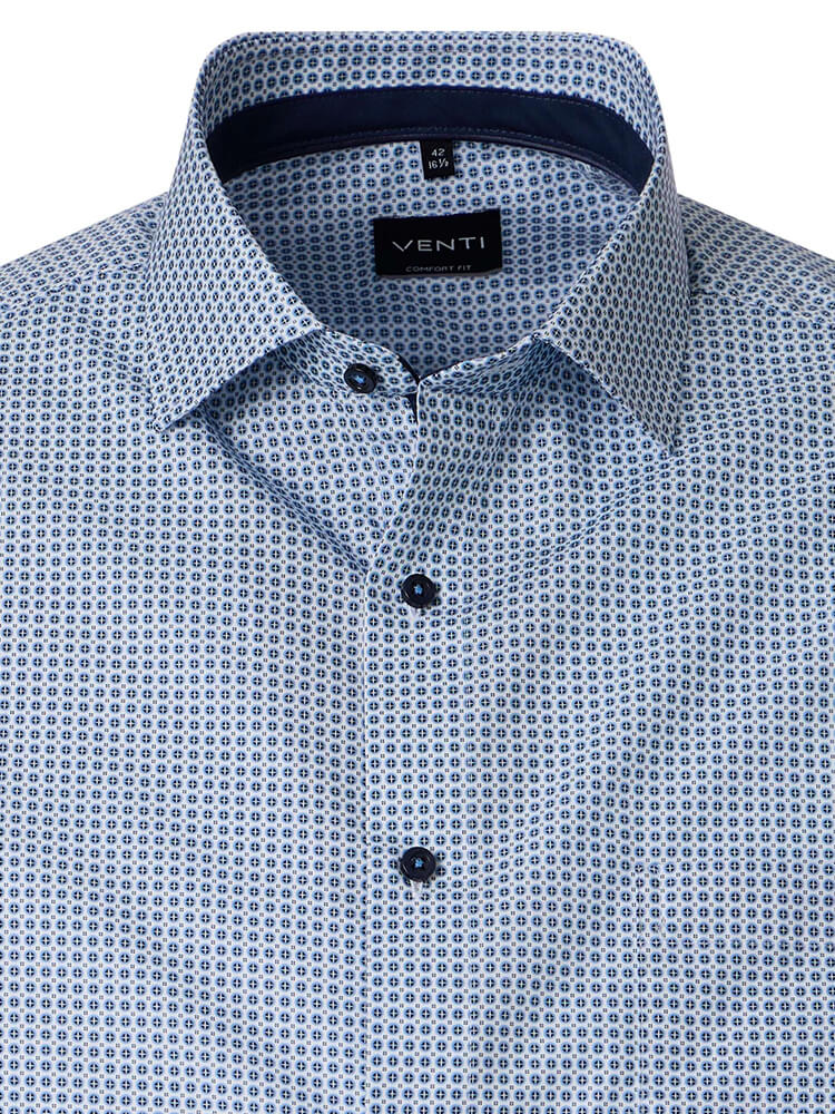Het comfortabele business overhemd uit de VENTI Comfort Fit collectie staat voor de cultiveerte en modebewuste man van vandaag. Een klassieke snit gecombineerd met modieuze productdetails belooft een hoog comfort en maakt van dit hemd een meester in het combineren. Het gedessineerde overhemd in de kleur lichtblauw overhemd voor heren mag in geen enkele mannengarderobe ontbreken en kan met de elegante en tijdloze Kent kraag zowel voor elke gelegenheid als in het dagelijks leven worden gedragen. Dit VENTI Comfort Fit herenoverhemd komt het beste tot zijn recht met een bijpassende stropdas en een brede dasknoop.