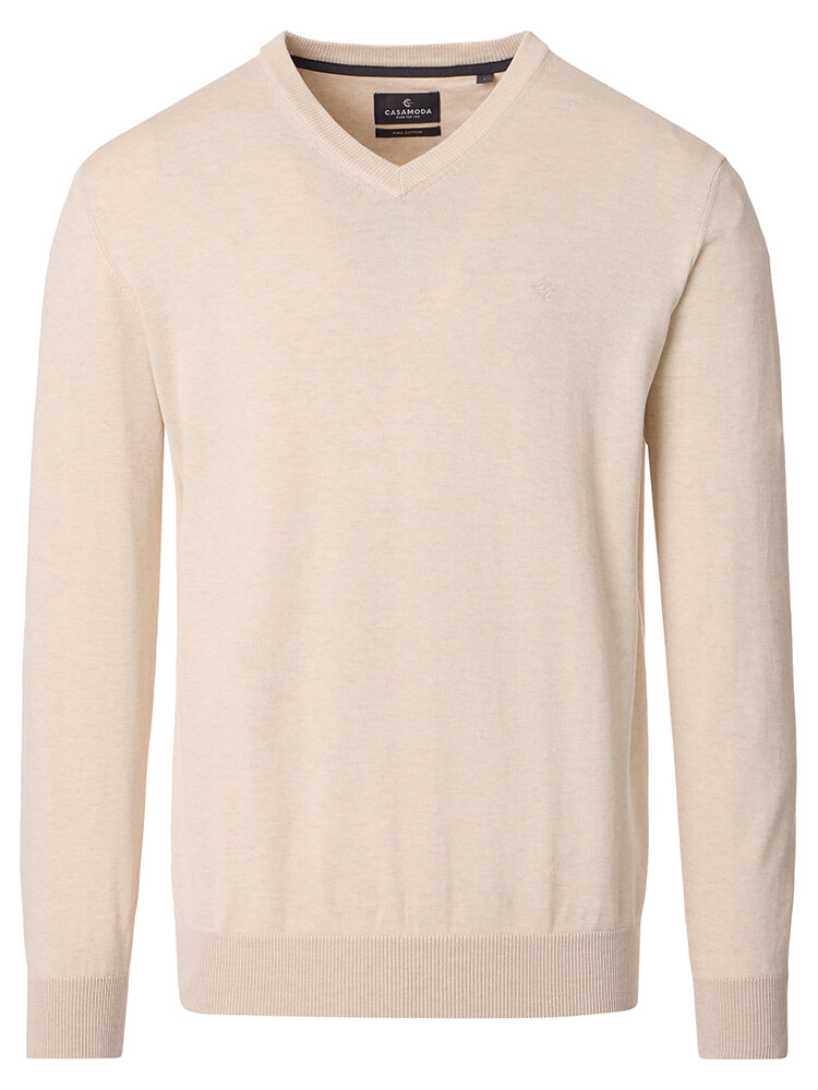 Wat het seizoen ook is, deze uiterst stijlvolle gebreide trui CASAMODA regular fit houdt u comfortabel op koelere avonden of dagen. Deze effen gebreide trui in lichtbeige van 100% katoen met een elegante V-hals vult uw garderobe aan en accentueert uw mannelijke silhouet. In uw vrije tijd of op kantoor, met deze licht getailleerde pullover van CASAMODA is de feel-good factor gegarandeerd.Fabrikantgegevens: