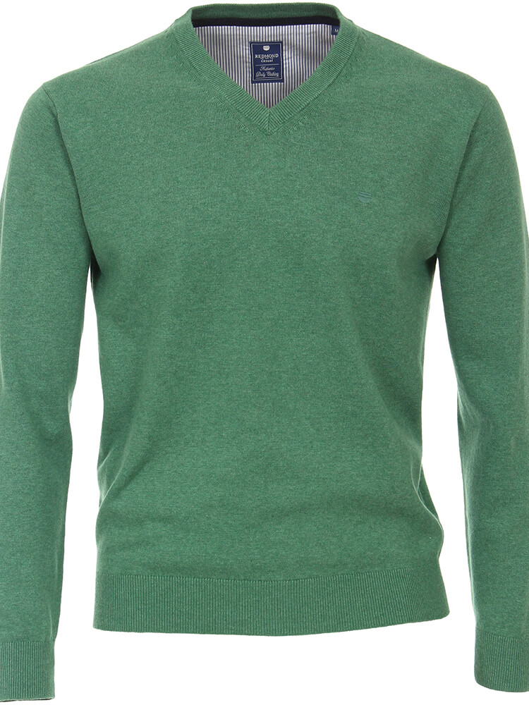 Wat het seizoen ook is, deze uiterst stijlvolle gebreide trui REDMOND regular fit houdt u comfortabel op koelere avonden of dagen. Deze effen gebreide trui in donkergroen van 100% katoen met een elegante V-hals vult uw garderobe aan en accentueert uw mannelijke silhouet. In uw vrije tijd of op kantoor, met deze licht getailleerde pullover van REDMOND is de feel-good factor gegarandeerd.