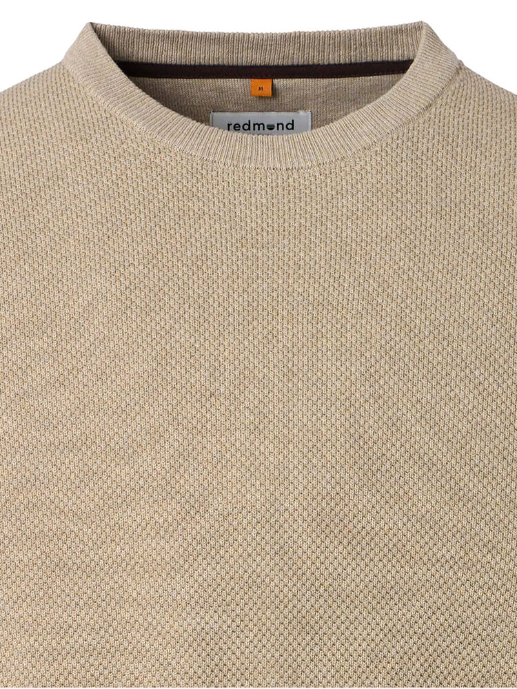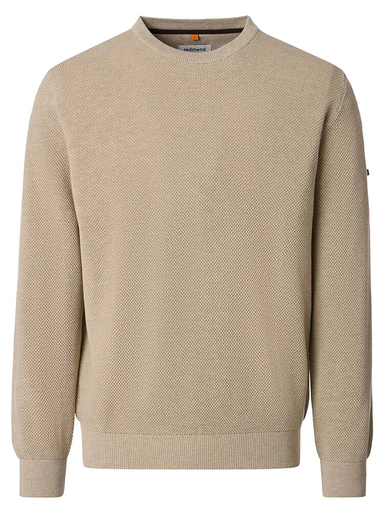 Wat het seizoen ook is, deze uiterst stijlvolle gebreide trui REDMOND regular fit houdt u comfortabel op koelere avonden of dagen. Deze effen gebreide trui in lichtbeige van 100% katoen met een elegante Ronde hals vult uw garderobe aan en accentueert uw mannelijke silhouet. In uw vrije tijd of op kantoor, met deze licht getailleerde pullover van REDMOND is de feel-good factor gegarandeerd.